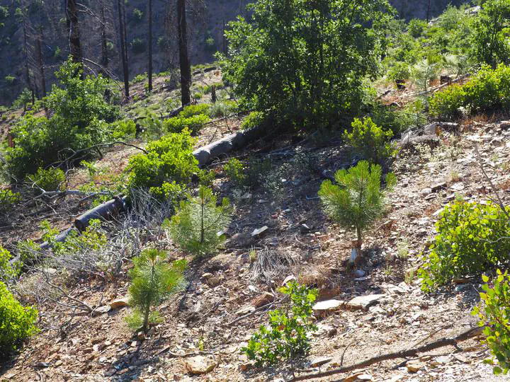The areas in need of post-fire reforestation far exceed the resources managers have for planting. It is critical to understand where tree planting is most likely to be effective at achieving restoration goals so that limited resources can be put to use most effectively. We surveyed regenerating vegetation in 5 fires that burned and were planted roughly 10 years prior to our surveys so that the planting outcomes had time to become apparent. We surveyed over 200 paired plots straddling planting unit boundaries to quantify the effect of planting – relative to natural regeneration – along environmental gradients. The data revealed, among other environmental influences, a strong effect of shrubs that varied from negative to positive depending on how soon after fire the seedlings were planted. We used the results to build a web-based management tool called PReSET that allows managers to predict reforestation outcomes and planting benefit across new wildfires that occur in Sierra Nevada mixed-conifer forests.